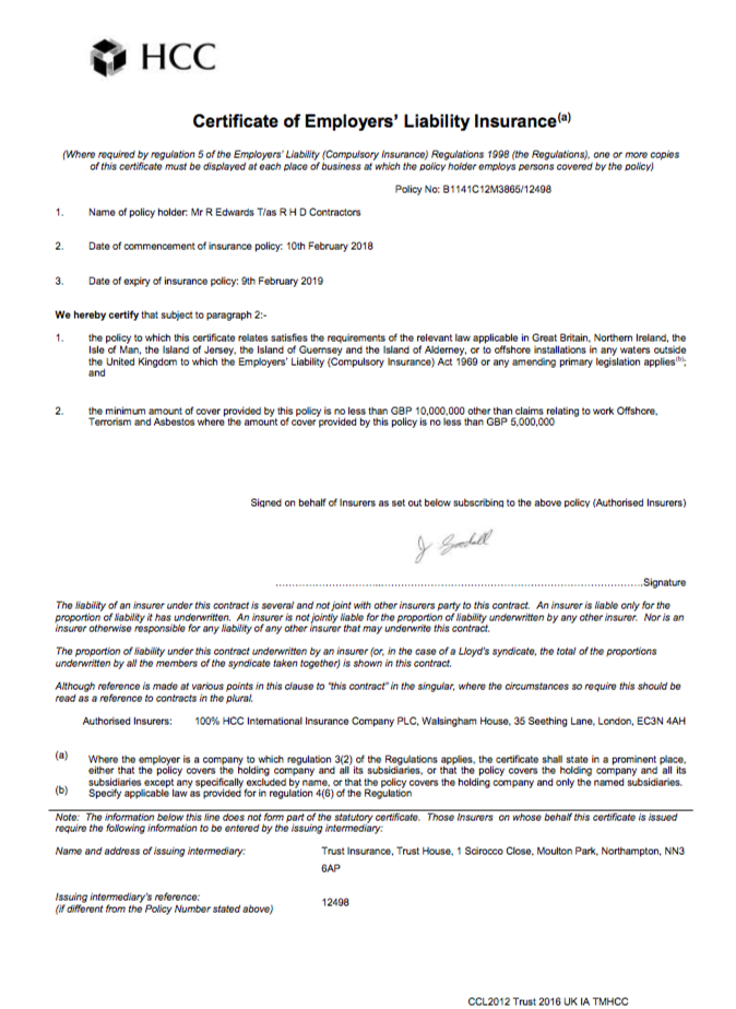 Please find insurance certificates below.